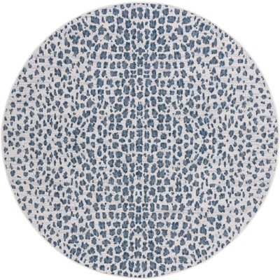 Courtyard Cheetah CY6100 UV & Stain Resistant Non-Shedding Power Loomed Indoor/Outdoor Area Rug - Navy/Beige - 6'7" Round - Safavieh