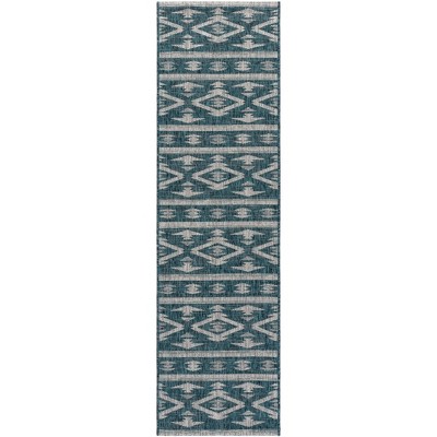 Courtyard Cheetah CY6100 UV & Stain Resistant Non-Shedding Power Loomed Indoor/Outdoor Runner Rug - Dark Green/Ivory - 2'3"x8' - Safavieh