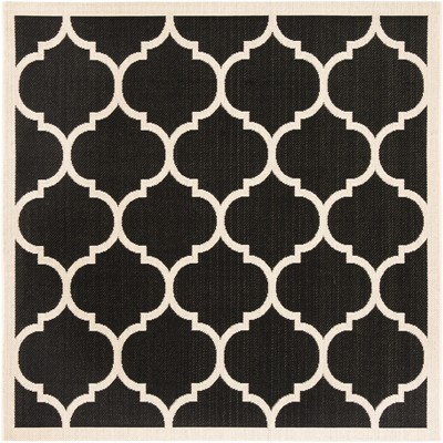 Courtyard CY6201 UV & Stain Resistant Non-Shedding Power Loomed Indoor/Outdoor Accent Rug - Black/Bone - 4'x4' - Safavieh