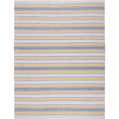 Very preppy and classic i put it in my covered front open porch and we get alot of high winds here in Texas it has withstood dust and insects with rain very well all I do is sweep it and it cleans well I love it