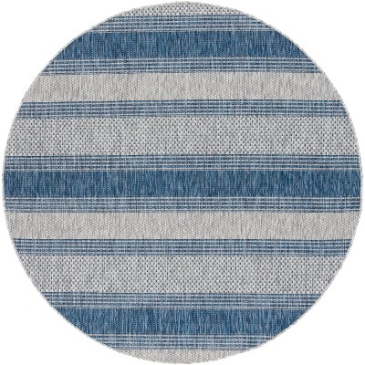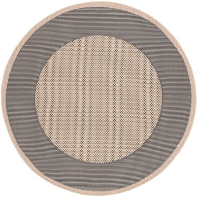 Courtyard CY6201 UV & Stain Resistant Non-Shedding Power Loomed Indoor/Outdoor Accent Rug - Grey/Bone - 4' Round - Safavieh