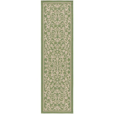 Elevate any hallway or outdoor setting with the timeless charm of our 2'-3" X 14' runner area rug, a seamless blend of durability and style. This runner rug features a vibrant chevron pattern in a sophisticated green and beige color palette, offering an eye-catching design that's at home in both traditional and contemporary spaces.