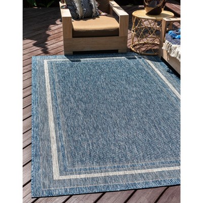 Courtyard Clayton CY6306 UV & Stain Resistant Non-Shedding Power Loomed Indoor/Outdoor Area Rug - Blue/Light Beige - 6'7"x9'6" - Safavieh