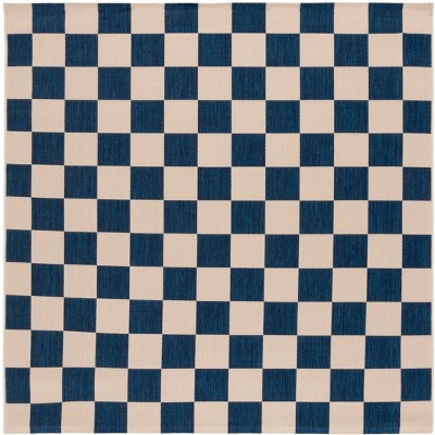 Courtyard CY6443 Power Loomed UV Resistant, Stain Resistant, Non-Shedding Indoor/Outdoor Accent Rug - Navy/Beige - 2'7"x2'7" - Safavieh