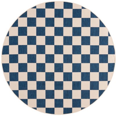 Courtyard CY6443 Power Loomed UV Resistant, Stain Resistant, Non-Shedding Indoor/Outdoor Area Rug - Navy/Beige - 6'7" Round - Safavieh