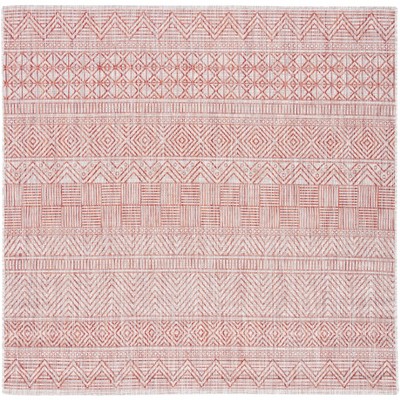 Courtyard CY6616 UV & Stain Resistant Non-Shedding Power Loomed Indoor/Outdoor Area Rug - Red/Beige - 6'7"x6'7" - Safavieh