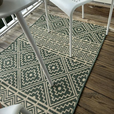 Needed an outdoor rug for my new balcony that has some chipped wood and this was perfect! The pattern is so cute, notice the white part is more beige but it looks really nice. And it’s comfortable to walk on, not like some other more plastic feeling outdoor mats.