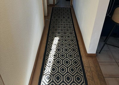 This rug runner is beautiful and seems very durable which will be needed with a dog and toddler.