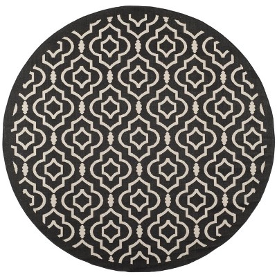 Courtyard CY6902 Power Loomed Indoor and Outdoor Area Rug - Black/Beige - 7'10" Round - Safavieh