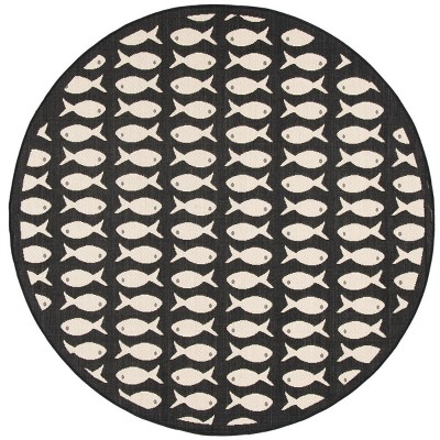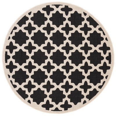 Courtyard CY6903 Power Loomed Indoor and Outdoor Area Rug - Black/Beige - 4' Round - Safavieh