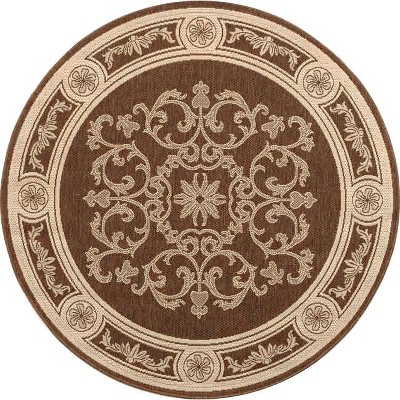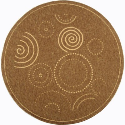 Courtyard CY6915 UV & Stain Resistant Non-Shedding Power Loomed Indoor/Outdoor Area Rug - Brown/Bone - 5'3" Round - Safavieh