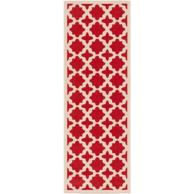 Courtyard CY6915 UV & Stain Resistant Non-Shedding Power Loomed Indoor/Outdoor Runner Rug - Red/Bone - 2'3"x10' - Safavieh