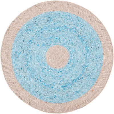 Courtyard CY6918 UV & Stain Resistant Non-Shedding Power Loomed Indoor/Outdoor Accent Rug - Blue/Beige - 4' Round - Safavieh