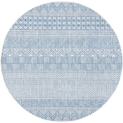 Courtyard CY6918 UV & Stain Resistant Non-Shedding Power Loomed Indoor/Outdoor Accent Rug - Navy/Beige - 4' Round - Safavieh