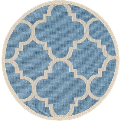 Courtyard CY6919 UV & Stain Resistant Non-Shedding Power Loomed Indoor/Outdoor Accent Rug - Blue/Beige - 4' Round - Safavieh