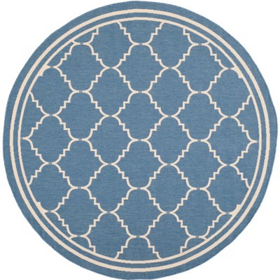 Courtyard CY6919 UV & Stain Resistant Non-Shedding Power Loomed Indoor/Outdoor Area Rug - Blue/Beige - 6'7" Round - Safavieh