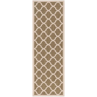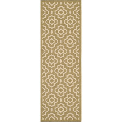 Courtyard CY6919 UV & Stain Resistant Non-Shedding Power Loomed Indoor/Outdoor Runner Rug - Green/Beige - 2'3"x10' - Safavieh