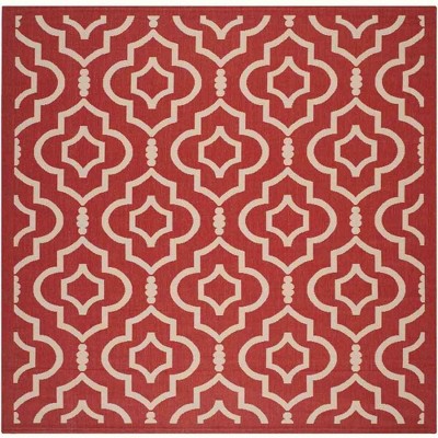 Courtyard CY6924 Power Loomed Indoor/Outdoor Area Rug - Red/Bone - 7'10"x7'10" - Safavieh.