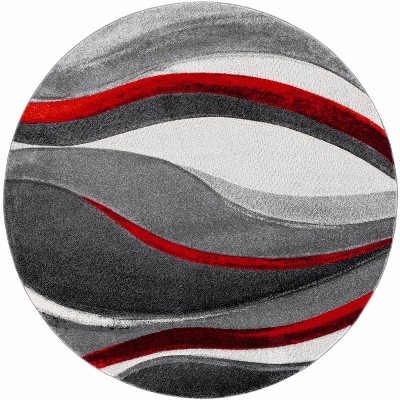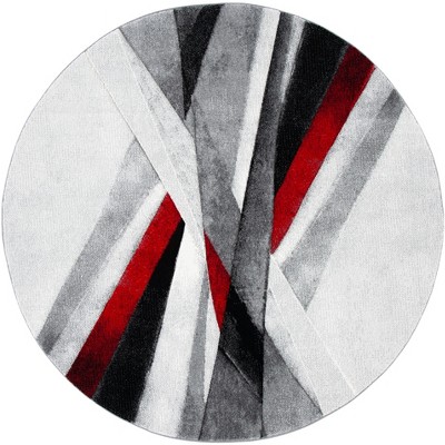 Courtyard CY7321 UV & Stain Resistant Non-Shedding Power Loomed Indoor/Outdoor Area Rug - Anthracite/Red - 6'7" Round - Safavieh