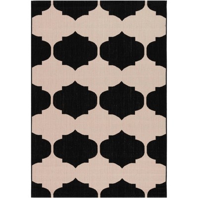 Courtyard Brookstone CY7938 UV & Stain Resistant Non-Shedding Power Loomed Indoor/Outdoor Accent Rug - Beige/Black - 4'x5'7" - Safavieh