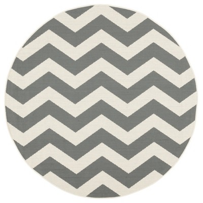 Courtyard CY8022 Power Loomed Indoor and Outdoor Area Rug - Grey/Navy - 4' Round - Safavieh