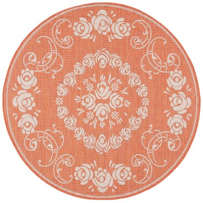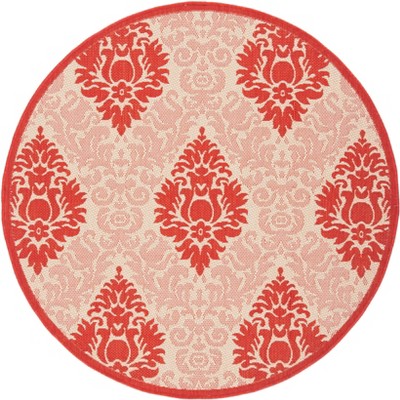 Courtyard CY8022 Power Loomed Indoor and Outdoor Area Rug - Red/Beige - 5'3" Round - Safavieh