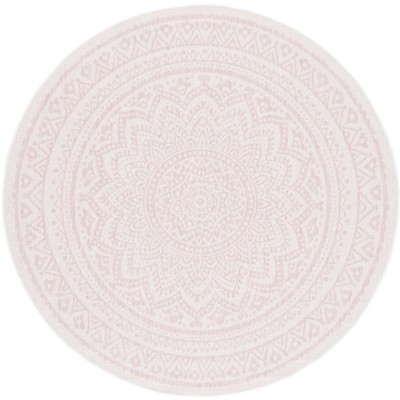 Courtyard CY8062 UV & Stain Resistant Non-Shedding Power Loomed Indoor/Outdoor Area Rug - Ivory/Soft Pink - 6'7" Round - Safavieh