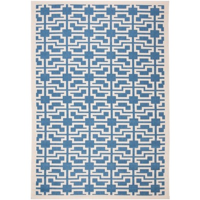 Courtyard CY8196 UV & Stain Resistant Non-Shedding Power Loomed Indoor/Outdoor Area Rug - Ivory/Navy - 5'3"x7'7" - Safavieh