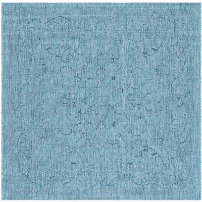 Courtyard CY8235 UV & Stain Resistant Non-Shedding Power Loomed Indoor/Outdoor Area Rug - Aqua/Navy - 6'7"x6'7" - Safavieh