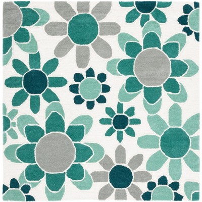 Good size (4x4) and very pretty color in the picture online, kind of turquoise. However, once it arrived, I noticed it has large lines of blue and green instead of being a subtle turquoise. I would recommend it more for outside because the look and feel is more like an outdoor, patio rug, but I need one for inside. Unfortunately, I'll be returning.