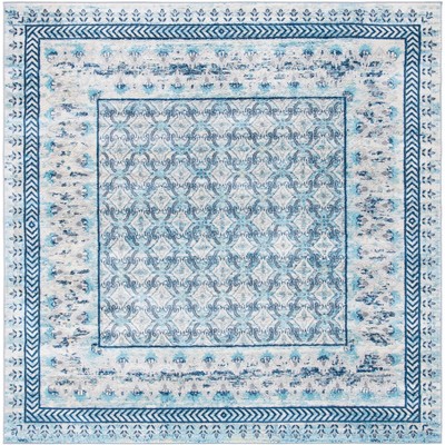Courtyard CY8444 UV & Stain Resistant Non-Shedding Power Loomed Indoor/Outdoor Area Rug - Ivory/Aqua - 6'7"x6'7" - Safavieh