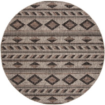Courtyard CY8464 UV & Stain Resistant Non-Shedding Power Loomed Indoor/Outdoor Accent Rug - Grey/Navy - 4' Round - Safavieh