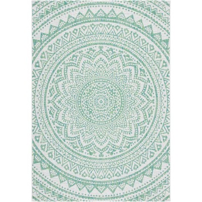 Courtyard CY8475 UV & Stain Resistant Non-Shedding Power Loomed Indoor/Outdoor Accent Rug - Ivory/Green - 4'x5'7" - Safavieh