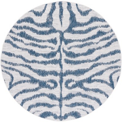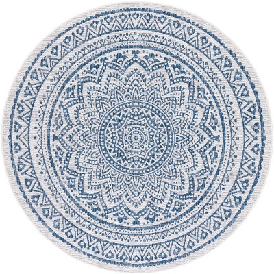 Courtyard CY8475 UV & Stain Resistant Non-Shedding Power Loomed Indoor/Outdoor Area Rug - Ivory/Navy - 6'7" Round - Safavieh