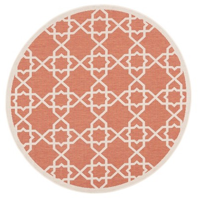 Courtyard CY8520 UV & Stain Resistant Non-Shedding Power Loomed Indoor/Outdoor Area Rug - Red/Red - 5'3" Round - Safavieh