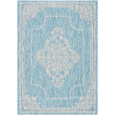 Courtyard CY8521 UV & Stain Resistant Non-Shedding Power Loomed Indoor/Outdoor Accent Rug - Aqua/Grey - 4'x5'7" - Safavieh