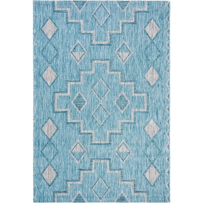 Courtyard CY8521 UV & Stain Resistant Non-Shedding Power Loomed Indoor/Outdoor Area Rug - Aqua/Grey - 5'3"x7'7" - Safavieh