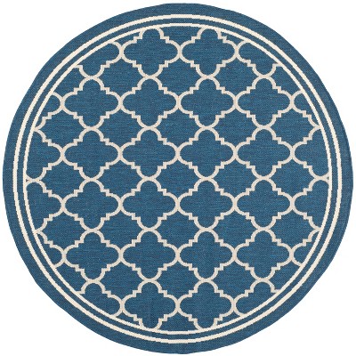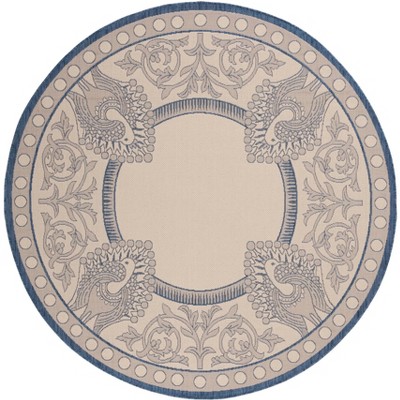 Courtyard CY8521 UV & Stain Resistant Non-Shedding Power Loomed Indoor/Outdoor Area Rug - Navy/Grey - 6'7" Round - Safavieh