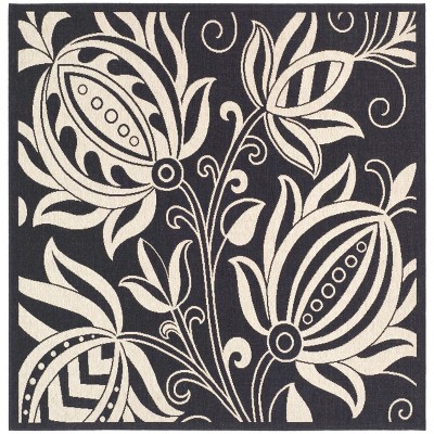 Courtyard CY8522 UV & Stain Resistant Non-Shedding Power Loomed Indoor/Outdoor Area Rug - Black/Black - 6'7"x6'7" - Safavieh