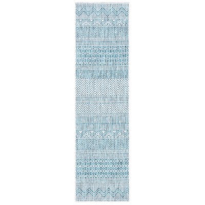 Courtyard CY8529 UV & Stain Resistant Non-Shedding Power Loomed Indoor/Outdoor Runner Rug - Grey/Teal - 2'3"x8' - Safavieh