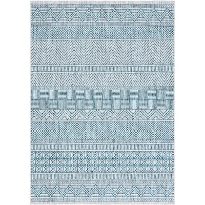 Courtyard CY8533 UV & Stain Resistant Non-Shedding Power Loomed Indoor/Outdoor Accent Rug - Grey/Teal - 2'7"x5' - Safavieh