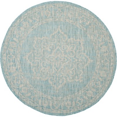 Courtyard CY8533 UV & Stain Resistant Non-Shedding Power Loomed Indoor/Outdoor Area Rug - Aqua/Grey - 6'7" Round - Safavieh