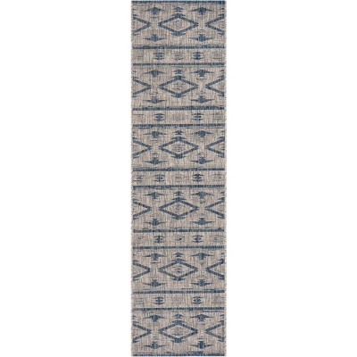 Courtyard CY8533 UV & Stain Resistant Non-Shedding Power Loomed Indoor/Outdoor Runner Rug - Grey/Black - 2'3"x10' - Safavieh