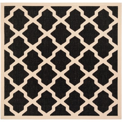 Courtyard CY8653 UV & Stain Resistant Non-Shedding Power Loomed Indoor/Outdoor Accent Rug - Black/Light Grey - 4'x4' - Safavieh