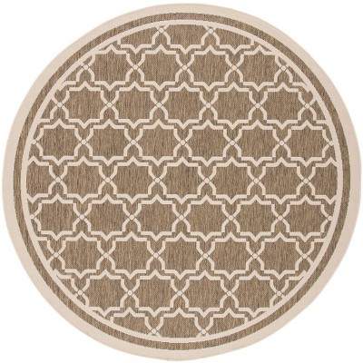 Courtyard CY8653 UV & Stain Resistant Non-Shedding Power Loomed Indoor/Outdoor Area Rug - Light Brown/Light Grey - 6'7" Round - Safavieh