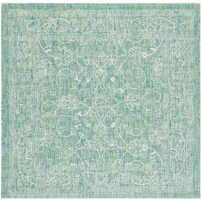 Courtyard CY8653 UV & Stain Resistant Non-Shedding Power Loomed Indoor/Outdoor Area Rug - Turquoise/Light Grey - 5'3"x5'3" - Safavieh