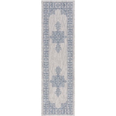 Courtyard CY8679 Power Loomed Indoor/Outdoor Runner Rug - Grey/Navy - 2'3"x6'7" - Safavieh.