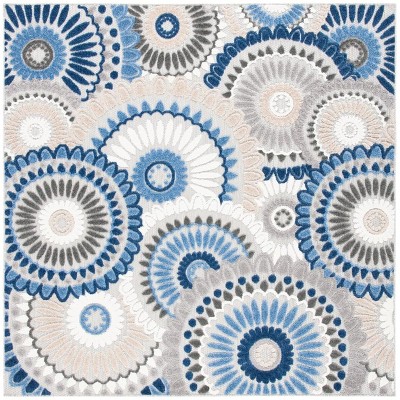 Courtyard CY8734 UV & Stain Resistant Non-Shedding Power Loomed Indoor/Outdoor Accent Rug - Light Grey/Teal - 3'x3' - Safavieh