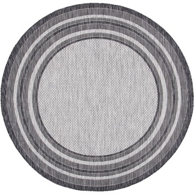 Courtyard CY8734 UV & Stain Resistant Non-Shedding Power Loomed Indoor/Outdoor Accent Rug - Light Grey/Black - 4' Round - Safavieh