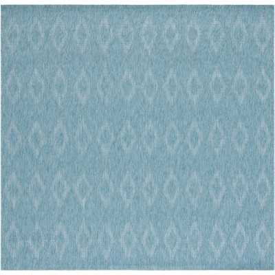 Courtyard CY8734 UV & Stain Resistant Non-Shedding Power Loomed Indoor/Outdoor Area Rug - Light Grey/Blue - 5'3"x5'3" - Safavieh